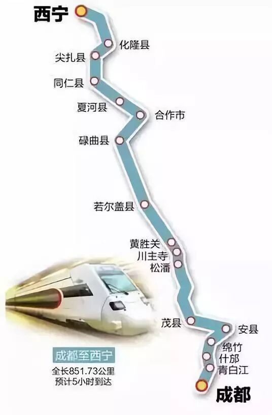 西宁至成都铁路全长836.5公里,其中甘肃省(甘南州境内)183.5km,铁路等级1级,正线数目双线、旅客列车设计行车时速200km/h(部分路段预留提速至250km/h平面条件)方案建设。规划远景年输送能力:客运单向3000万人/年,货运500万吨/年。是一条以客运为主,轻快货物运输为辅的干线铁路。项目估算总投资814.9亿元,建设工期7.5年,计划2020年开工建设。 这就意味着