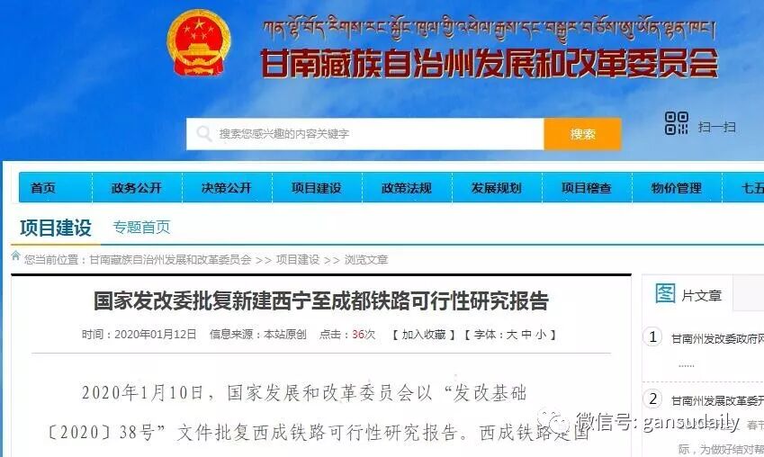 据甘南州发展改革委网站消息,2020年1月10日,国家发展和改革委员会以“发改基础〔2020〕38号”文件批复西成铁路可行性研究报告。