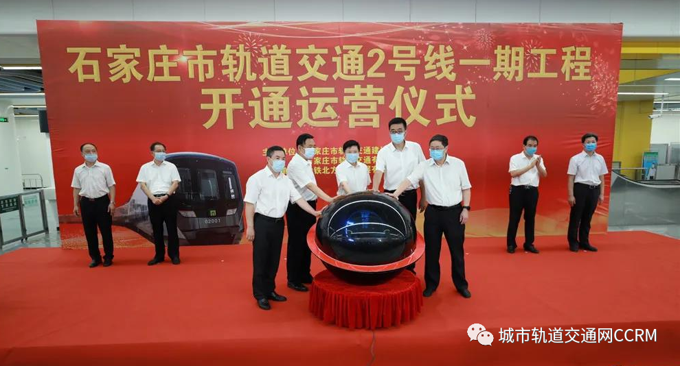 轨道交通2号线启动仪式在北国商城站内举行,仪式由石家庄市常务副市长李雪荣主持,中国中铁公司副总裁刘宝龙、石家庄市市长邓沛然分别致辞,石家庄市市委书记邢国辉宣布正式开通运营。