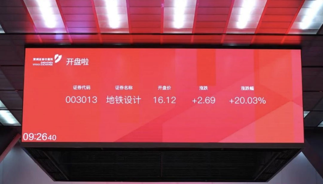 地铁设计开盘仅一分多钟,涨幅20.03%