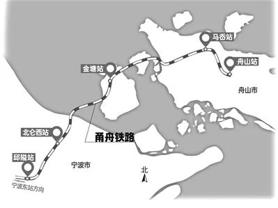 宁波至舟山的甬舟铁路以宁波枢纽宁波东站为起点,经宁波鄞州区、北仑区,舟山金塘岛、册子岛、富翅岛,终于舟山市定海区白泉镇。