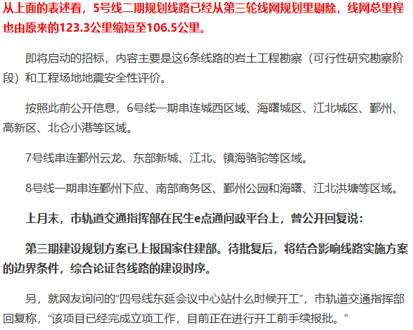 按照预公示的招标文件所示,宁波轨道交通第三期建设规划(2020-2025)建设项目,包括6条线路:6号线一期、7号线、8号线一期、1号线西延、4号线西延、4号线东延。