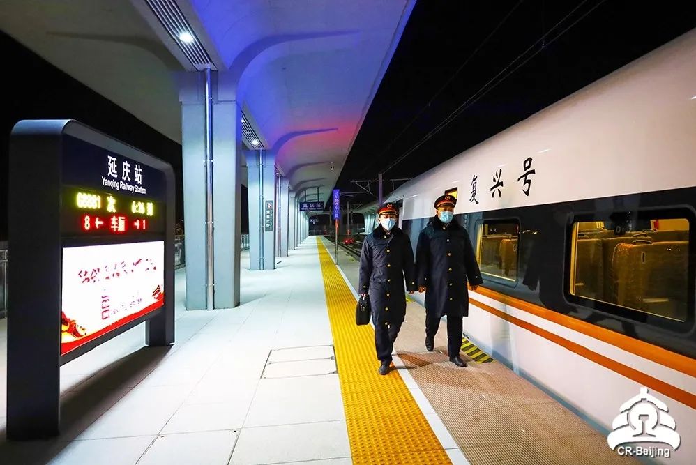 目前,京张高铁延庆线共开行复兴号列车5对,其中北京北站至延庆站间2对、清河站至延庆站间3对。