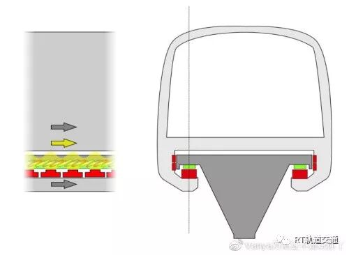 ——磁浮技术原理图。通过磁极原理实现悬浮于半空的磁悬浮并且再施加以推动力。
