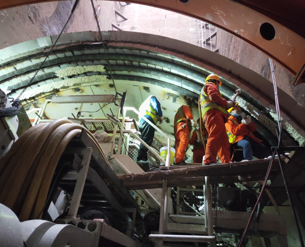 施工单位中铁十四局项目部相关负责人介绍,此次始发的“铁军2号”复合式TBM盾构机为全断面土压平衡盾构机,主要承担物流园北站~井口站区间右线的掘进任务,区间全长2004.96米,下穿多条既有铁路线,施工环境复杂、安全风险大、技术要求高。项目部提前谋划、认真准备,优化资源配置,有力保证了第4台复合式TBM盾构机顺利始发。