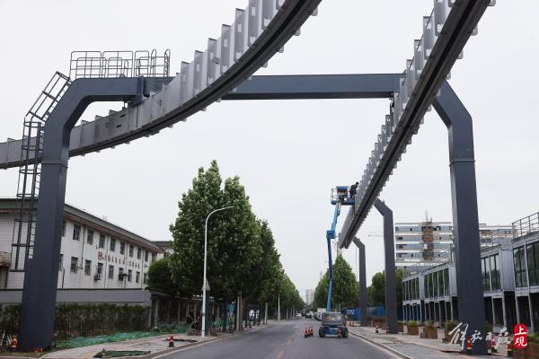 轨道交通展讯 2023年5月16日,路面上悬空架设的一条“钢骨架”轨道,让人眼前一亮。