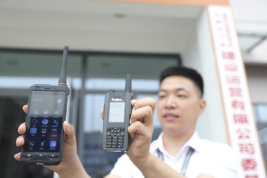 工作人员展示升级后的智能手持终端(左),具有可视化操作,极大提高了工作效率。华龙网-新重庆客户端 首席记者 李文科 摄