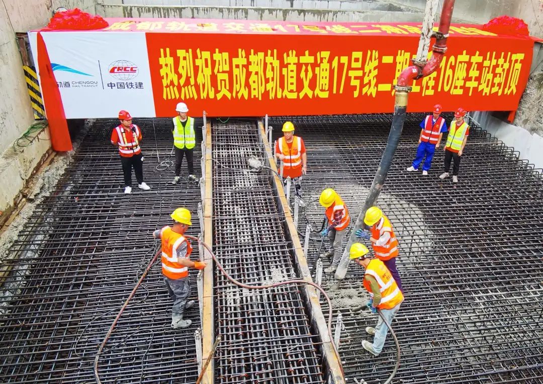 6月21日,省骨科医院站最后一块顶板浇筑完成,这是成都轨道交通17号线二期18座车站中,第16座封顶的车站。