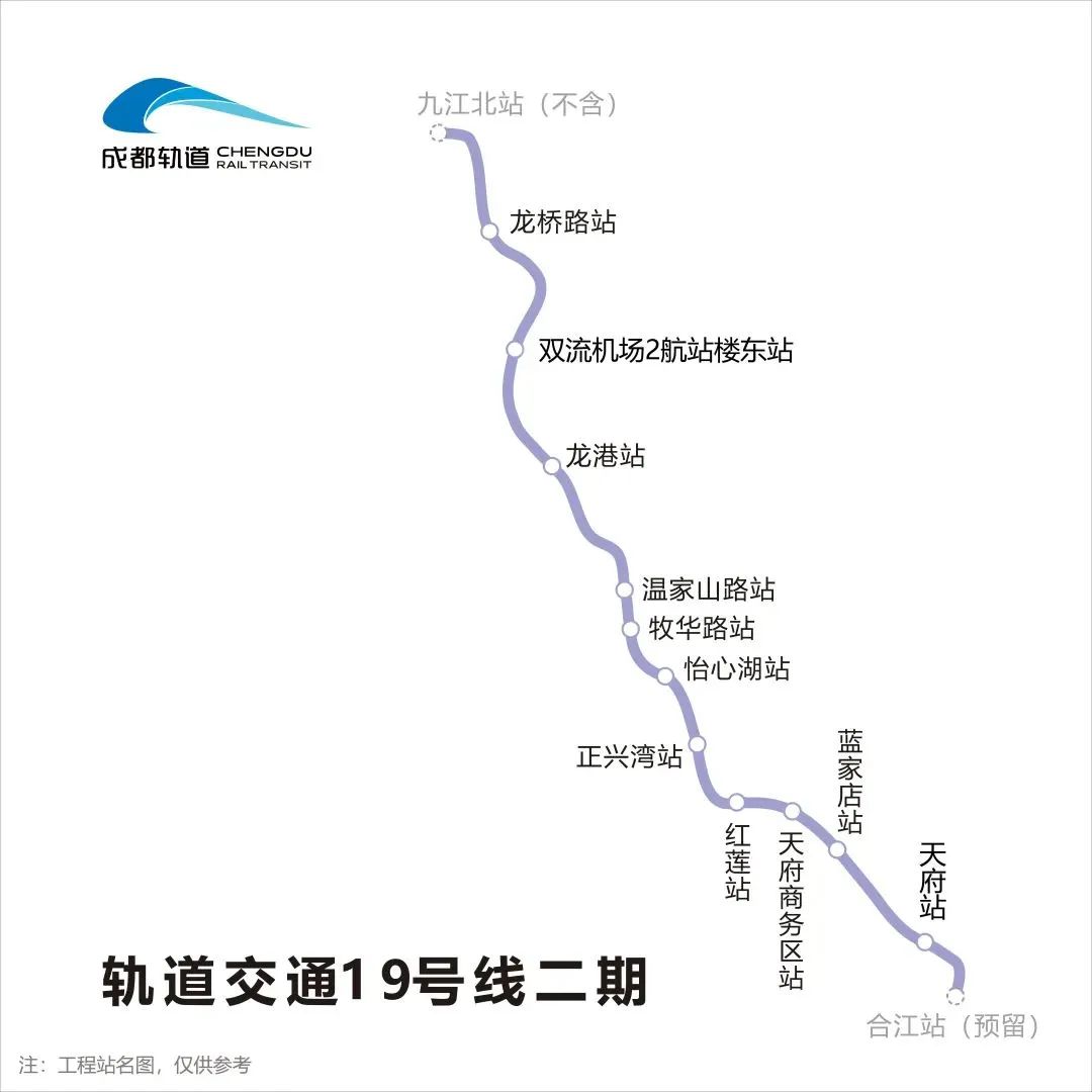 19号线二期工程是成都轨道交通第四期建设规划项目,是天府新区核心区向西辐射双流市域的快线通道,衔接了双流国际机场、天府国际机场、天府新站等门户枢纽。