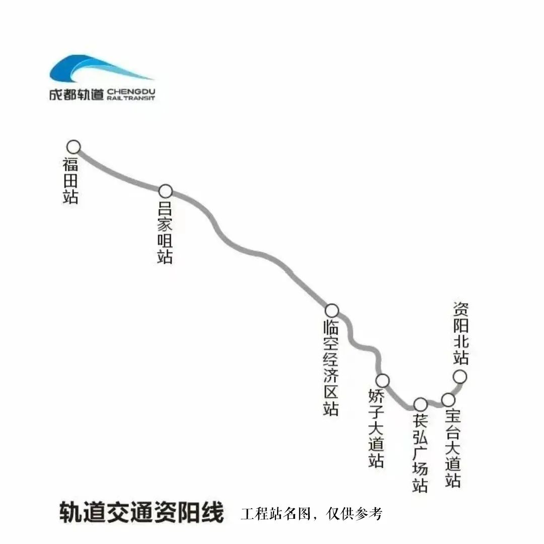 轨道交通资阳线(成都市域铁路S3线)是连接成都天府国际机场、成都东部新区天府国际空港新城和资阳市临空经济区与资阳市雁江区的轨道交通快线。线路全长38.7公里,设车站7座;在福田站与成都轨道交通18号线换乘。车辆采用市域A型列车,最高运行时速160公里/小时,预计2024年年底建成通车。