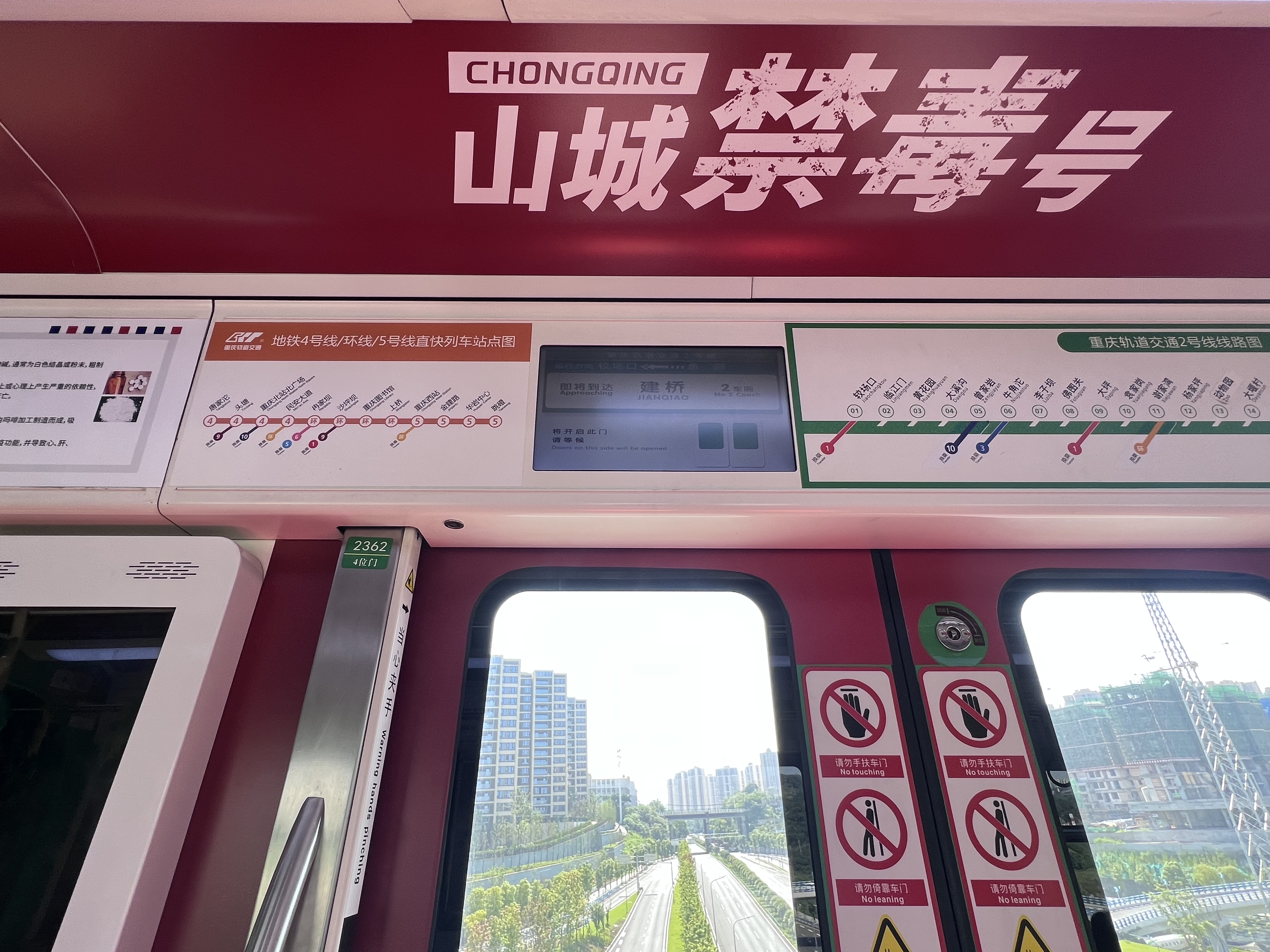 据悉,“山城禁毒号”轨道专列正式上线运营后,依托2号线日均客运量50万余人次的流量优势,提升禁毒社会化宣传覆盖面、传播度。