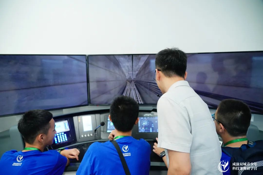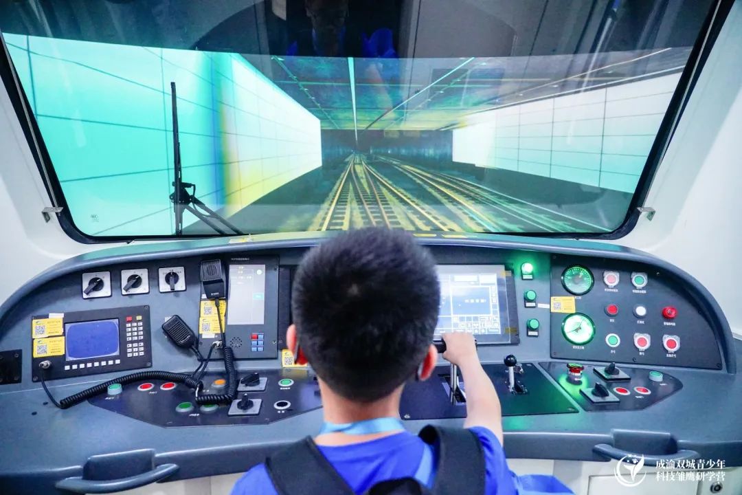 在记录的同时,碰到可以实践体验的轨道列车驾驶,吕玄昊会请同行的同学帮忙记录。“第一次来这里参观,发现现在成都的轨道交通有很多智能化的改变,很便利,希望以后我也能够加入他们的研究队伍。”