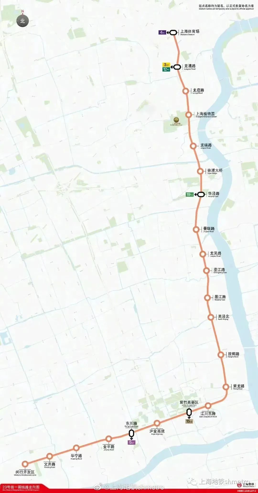上海市轨道交通23号线对加强老闵行至市区之间的轨道交通服务,带动浦西南部区域发展具有重要意义。23号线均为地下线,全长约28.6公里,共设22座车站,其中换乘站5座。